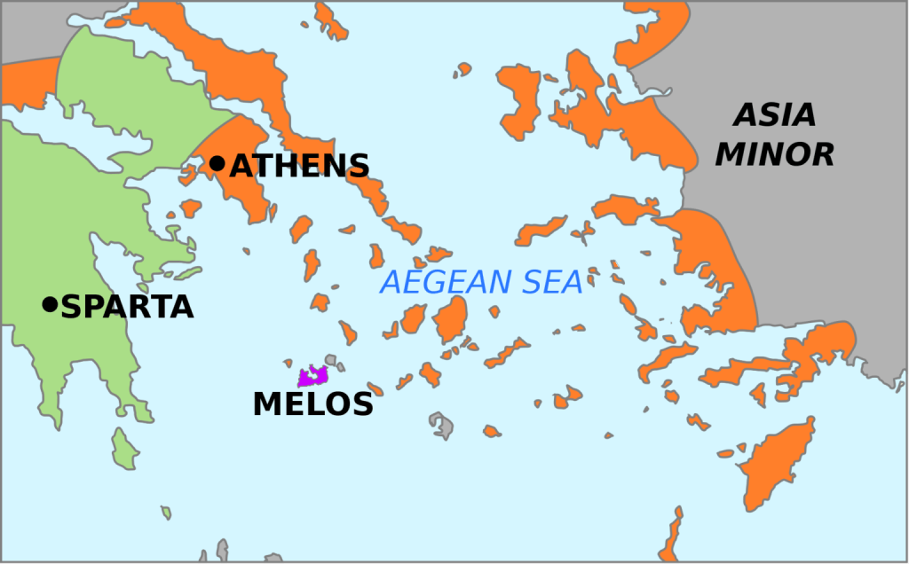 For people unfamiliar with the geography of the Peloponnesian War, the below image1 will help give an understanding of the size of Athens and Melos: